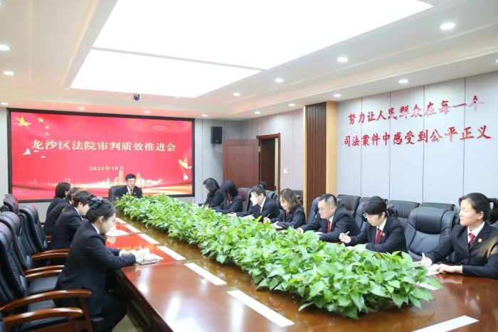 10月22日下午,龙沙区法院召开审判质效推进会议,贯彻落实全市法院审判质效和“走在前列”工作调度会议精神,总结分析2025年前三季度审判执行各项指标运行态势,全面梳理经验做法,剖析检视差距不足,部署安排第四季度重点任务,凝聚共识、明确方向,为打好“走在前列”和“三年强院行动”收官之战奠定坚实基础。院党组书记、院长李效林出席会议并讲话,院领导及部门负责人参加会议。