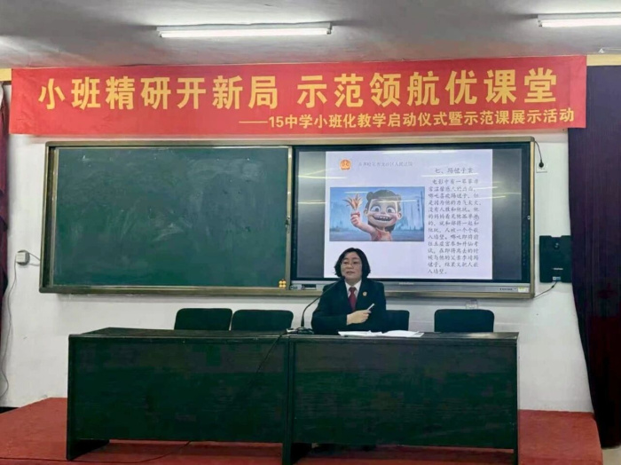 课堂上,梁瑜根据初中一年级学生的身心特点,结合实际案例与电影《哪吒之魔童降世》《哪吒之魔童闹海》,详细讲解了欺凌、酒驾、毁财、替考等一系列法律问题,向学生们普及了《中华人民共和国民法典》《中华人民共和国刑法》《中华人民共和国道路交通安全法》等相关法律知识。