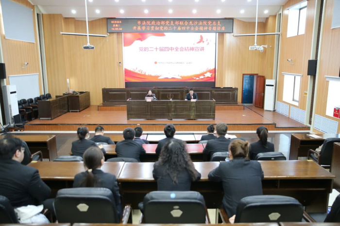 为深入学习贯彻党的二十届四中全会精神,引导全院干警统一思想、凝聚共识,以更高站位、更强担当推动法院工作高质量发展,2月3日,齐齐哈尔市中级人民法院政治部党支部与龙沙区法院党总支联合开展党的二十届四中全会精神专题学习活动。活动特邀市委宣讲团成员、齐齐哈尔大学马克思主义学院雷荣珍老师作专题辅导授课,市法院政治部、龙沙区法院全体党员干警参与。