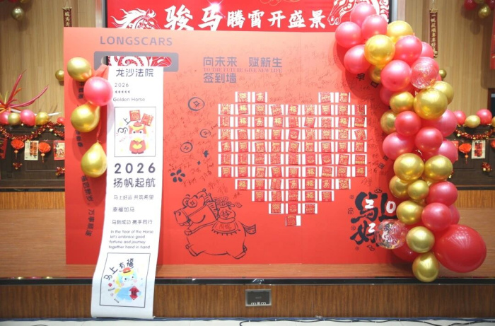 联欢会正式启幕前,“红毯”预热环节就已率先点燃了喜庆的节日氛围。干警们彼此交换手写的新年祝福与愿景,在创意签到墙前留下个性签名与灿烂笑颜,相互问候、合影打卡。现场一片欢腾热闹,洋溢着对新年的美好憧憬与蓬勃活力。