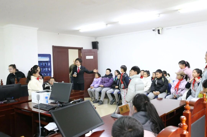 在诉讼服务中心,同学们详细了解了立案流程和便民服务举措;科技法庭内,大家依次坐上审判席,亲身体验法庭的庄严与肃穆;院史室内,一幅幅老照片和荣誉奖牌,无声地诉说着龙沙法院的发展历程和法治精神的代代传承;家事(少年)审判法庭里,温馨的布置让同学们感受到了司法对未成年人的关怀与守护。